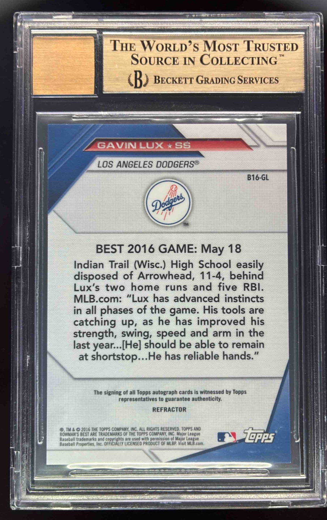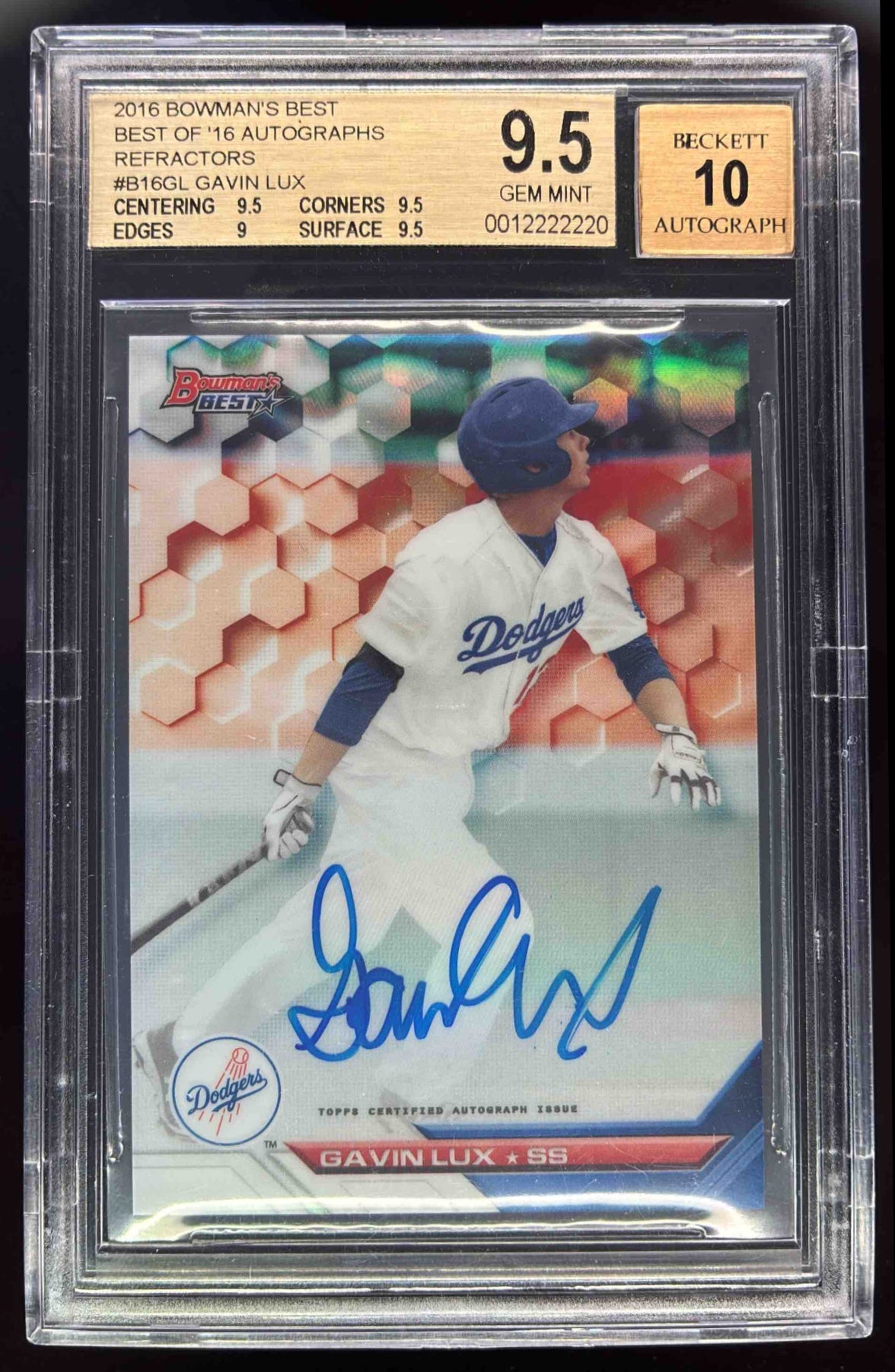 2016 Bowman's Best of 2016 Autographs Refractor #B16-GL Gavin Lux Auto BGS 9.5