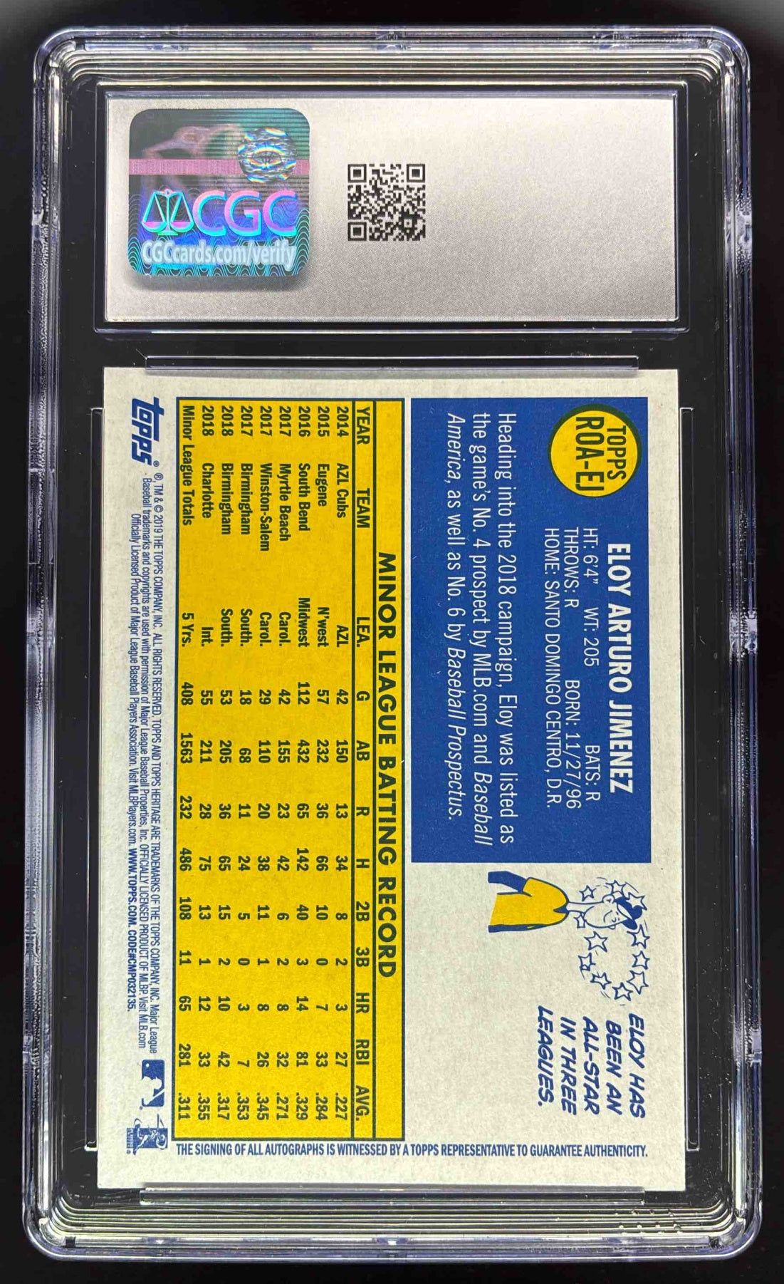 2019 Topps Heritage Real One Autographs #ROA-EJ Eloy Jimenez RC Auto CGC 10