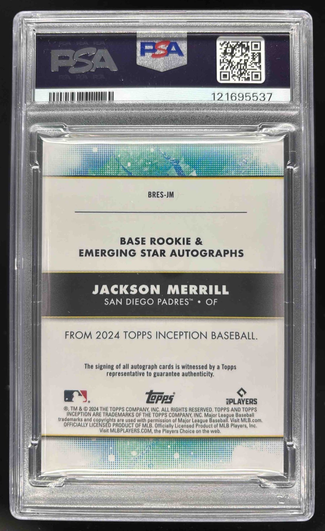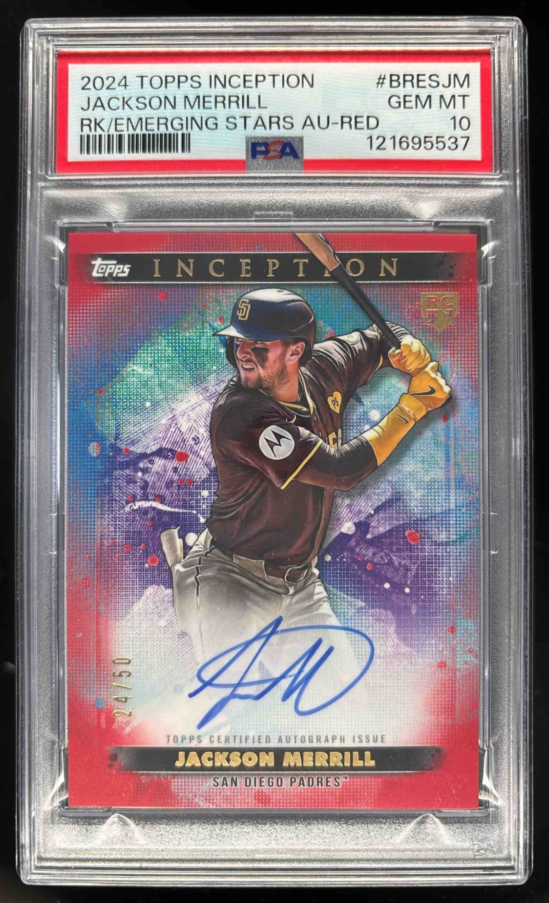 2024 Inception Rookies and Emerging Star Red Jackson Merrill RC Auto /50 PSA 10