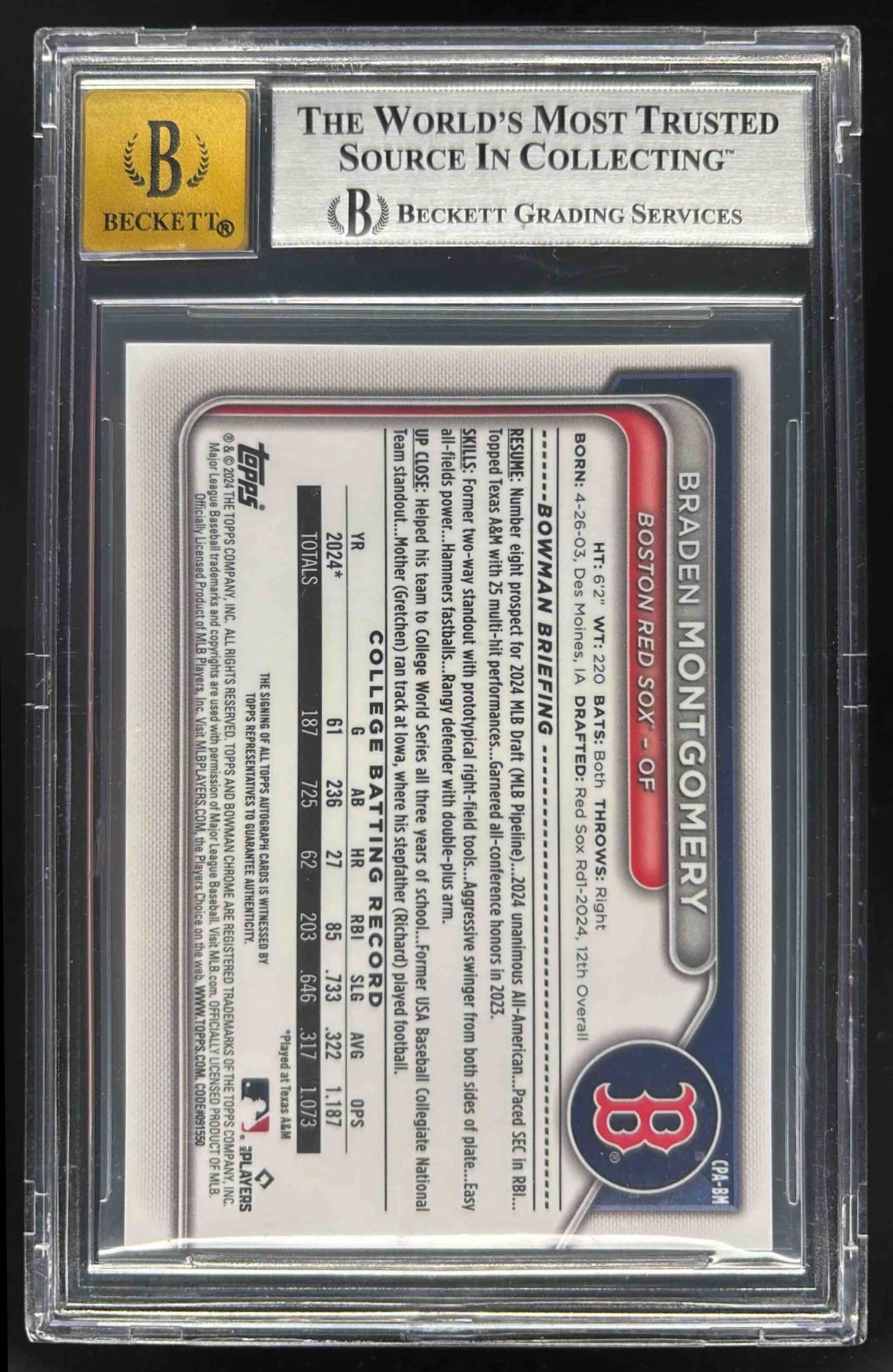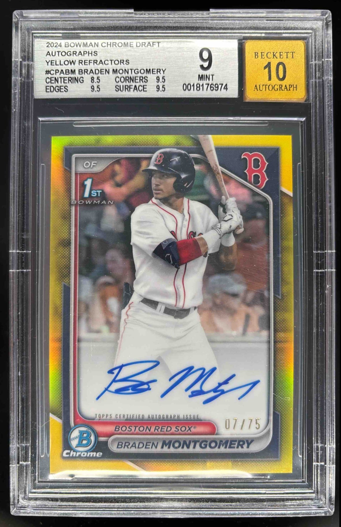 2024 Bowman Draft Chrome Yellow Refractor Braden Montgomery RC Auto /75 BGS 9