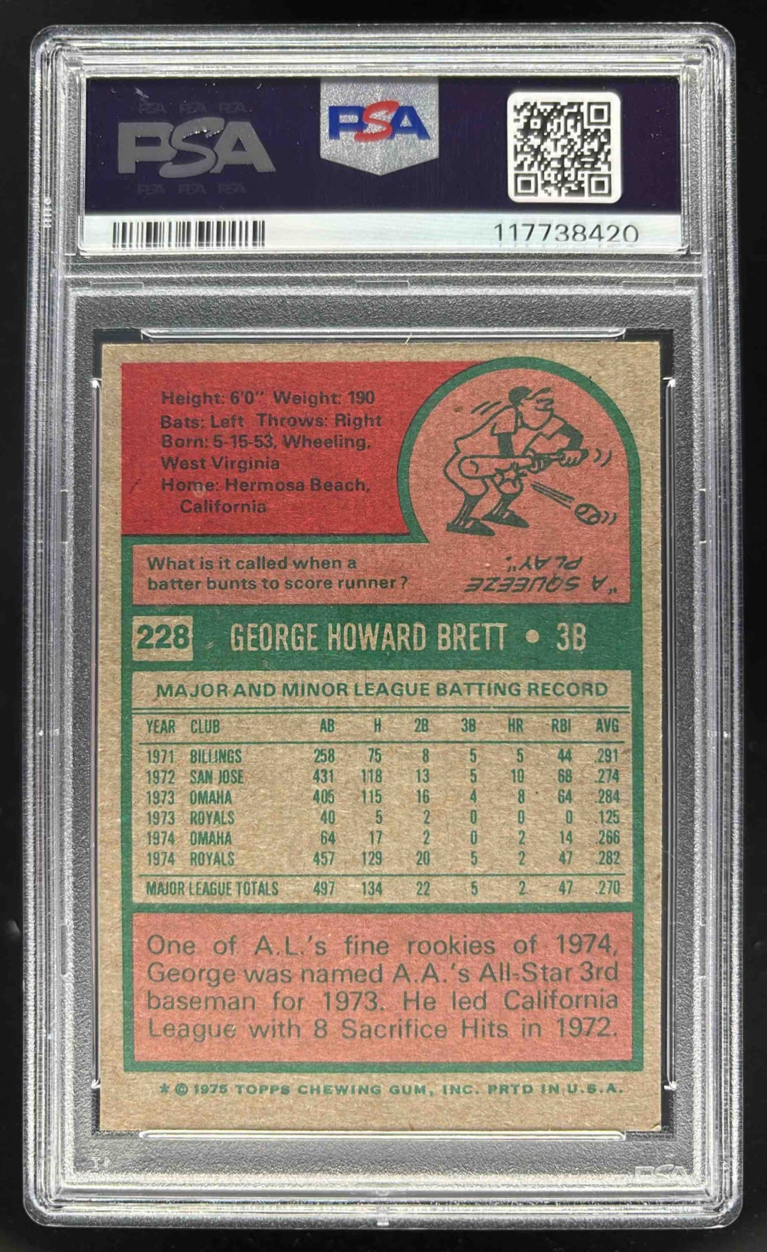 1975 Topps #228 George Brett RC PSA 6