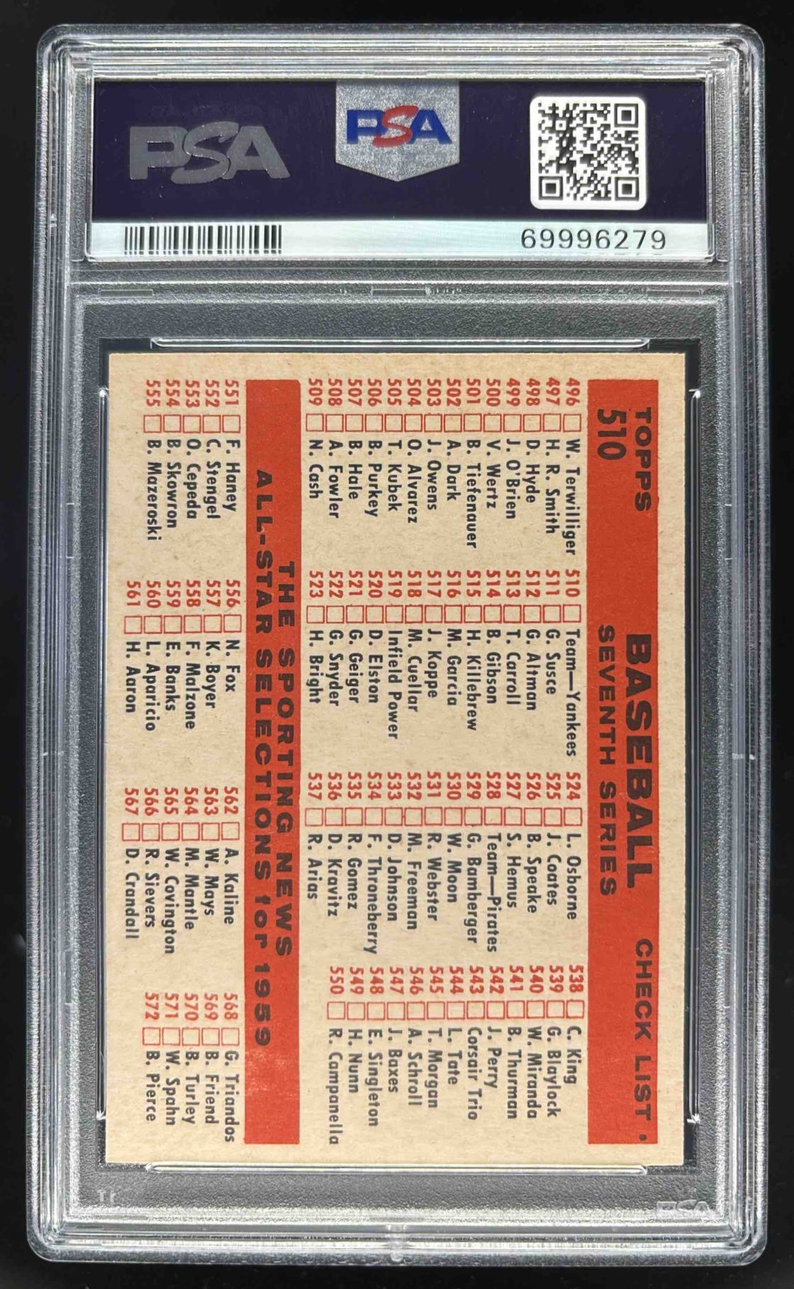 1959 Topps #510 Seventh Series Checklist: 496-572 CL Checklist PSA 7