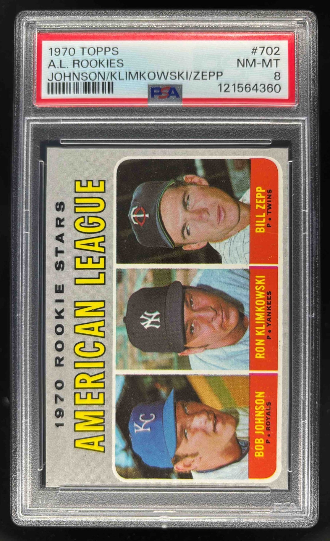 1970 Topps #702 A.L. Rookie Stars Bob Johnson Ron Klimkowski Bill Zepp RC PSA 8