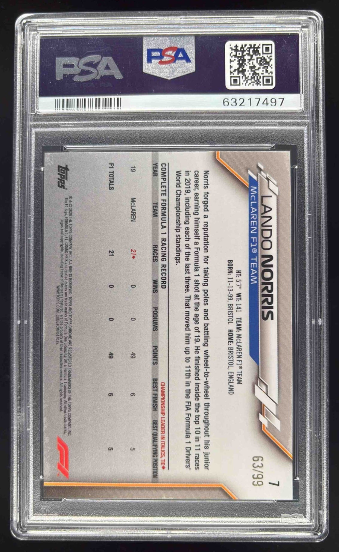 2020 Topps Chrome Sapphire Formula 1 Aqua #7 Lando Norris RC SP /99 PSA 9