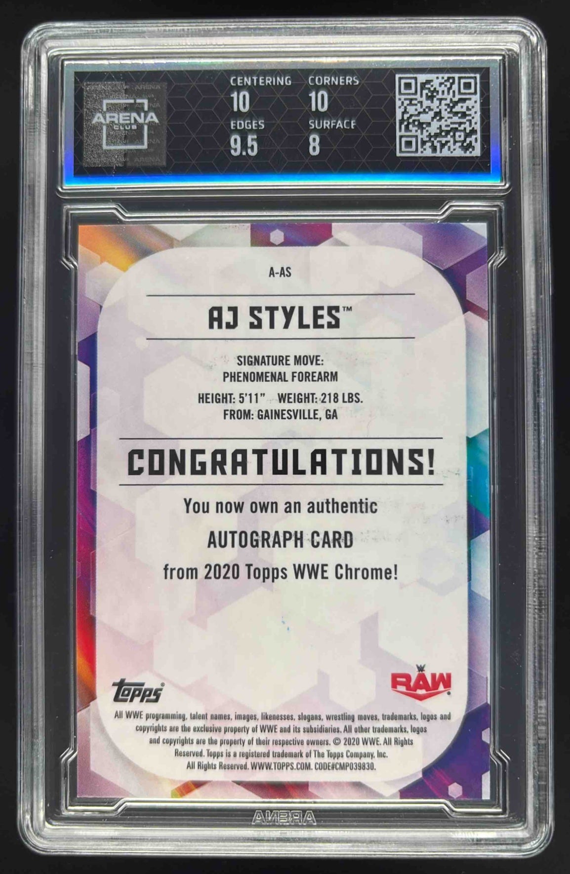 2020 Topps Chrome WWE Autographs Gold #A-AS AJ Styles Auto /50 Arena 8.5