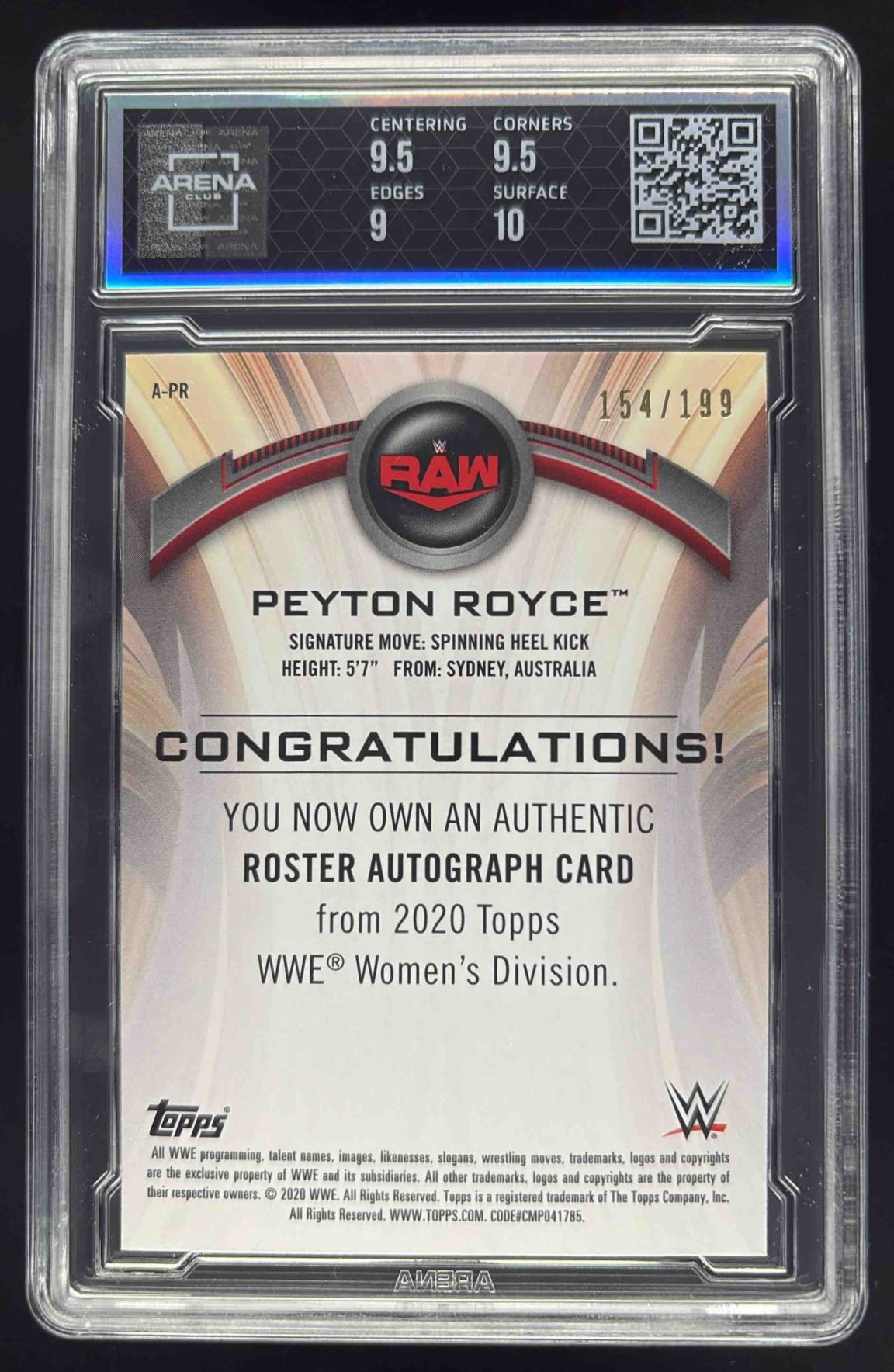 2020 Topps WWE Women's Division Roster Peyton Royce Auto /199 Arena 9.5