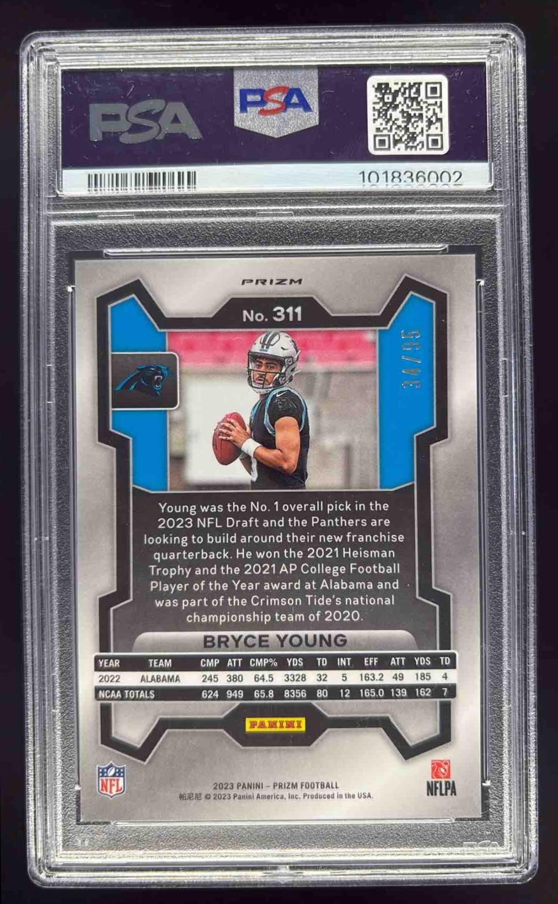 2023 Panini Prizm No Huddle Blue Prizm #311 Bryce Young RC /95 PSA 9