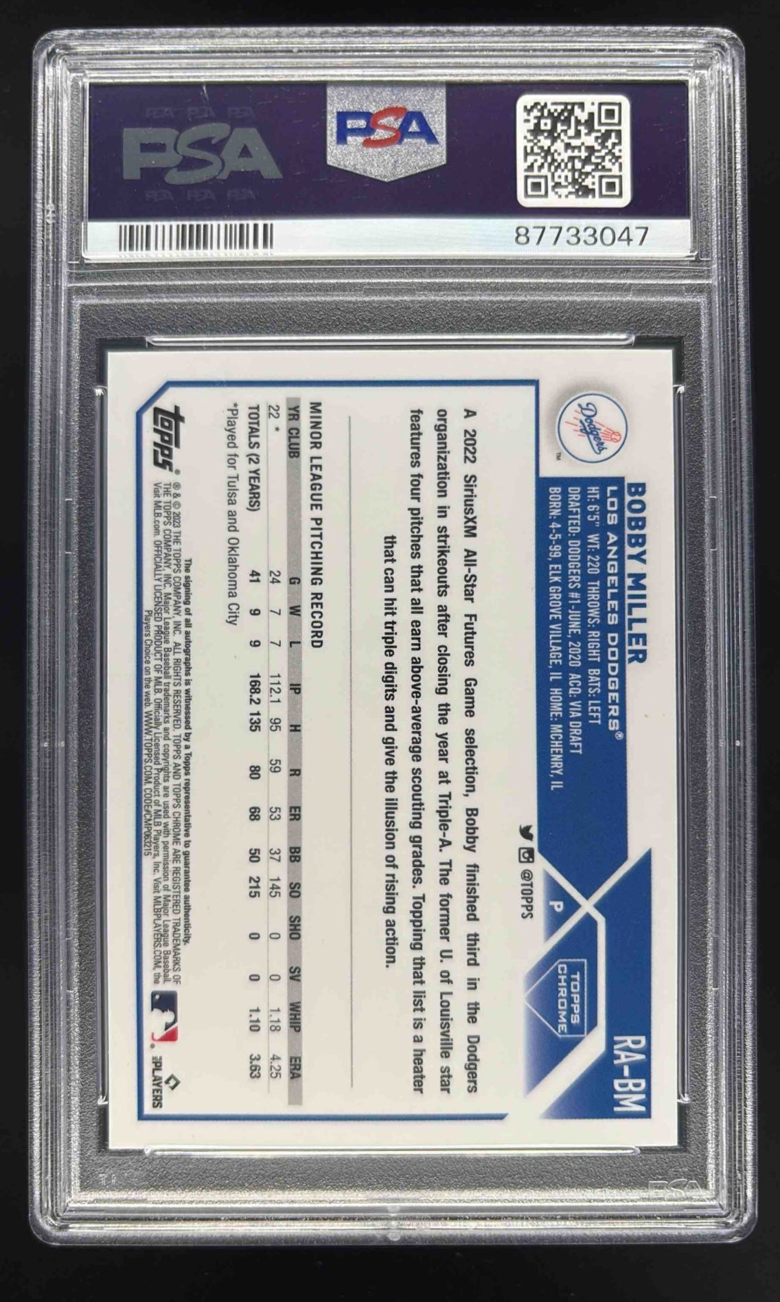 2023 Topps Chrome Update Blue Refractor #RA-BM Bobby Miller RC Auto /150 PSA 9