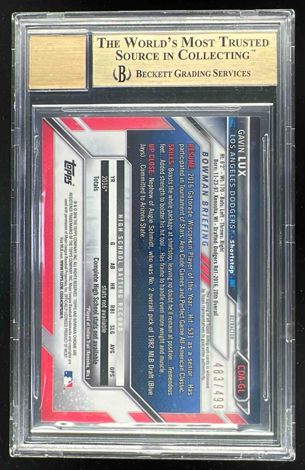 2016 Bowman Draft Chrome Refractor #CDA-GL Gavin Lux Autograph Auto /499 BGS 9.5