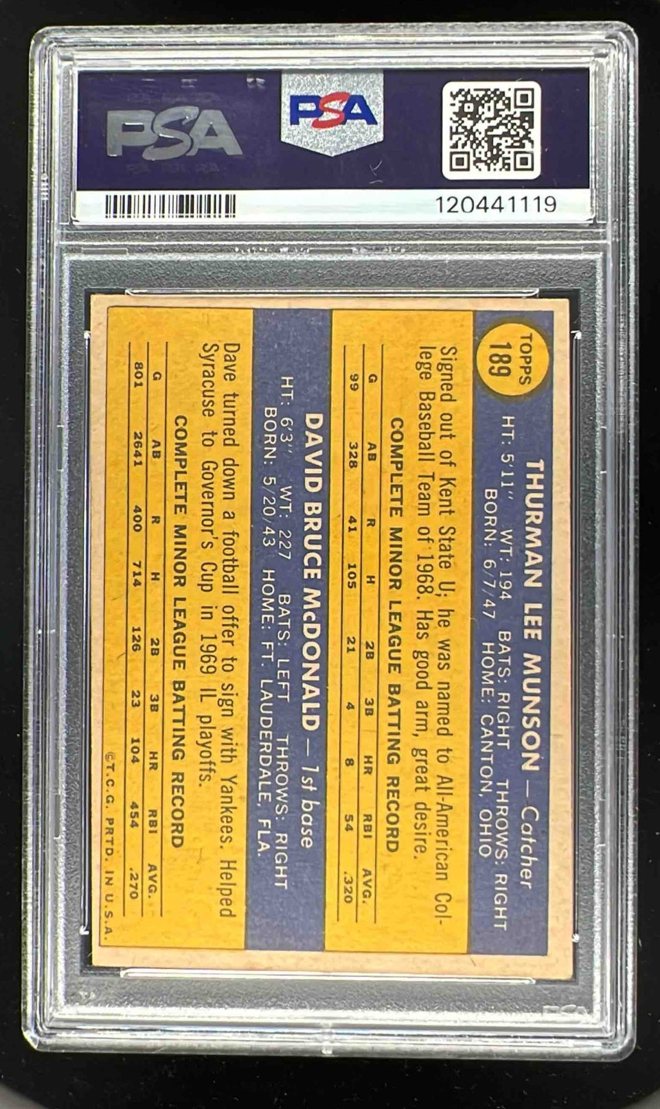 1970 Topps #189 Yankees 1970 Rookie Stars Thurman Munson Dave McDonald RC PSA 4