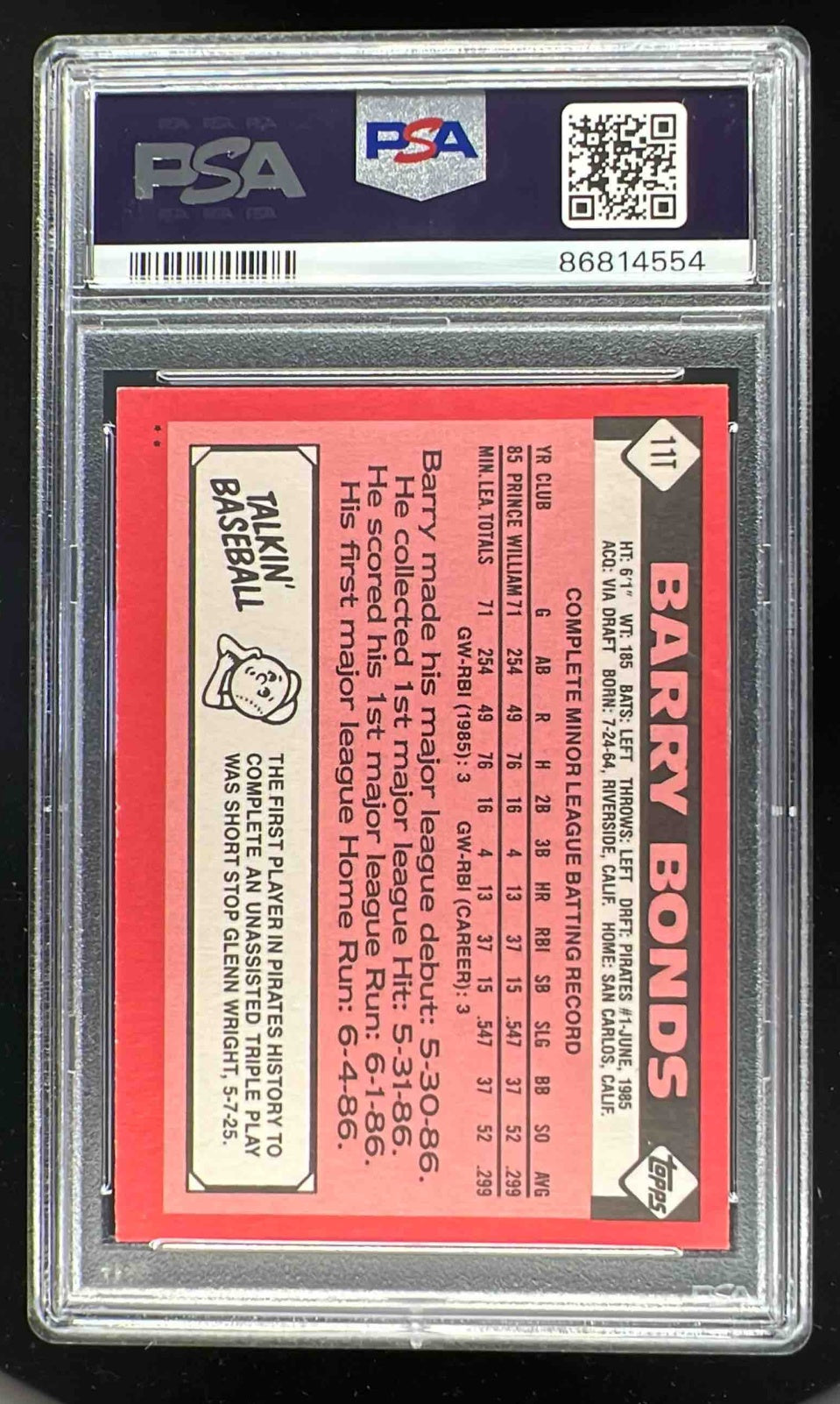 1986 Topps Traded #11T Barry Bonds RC PSA 8