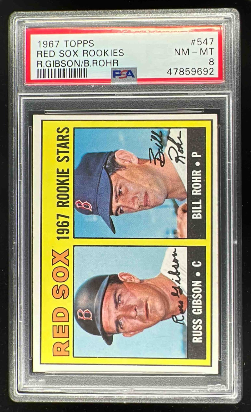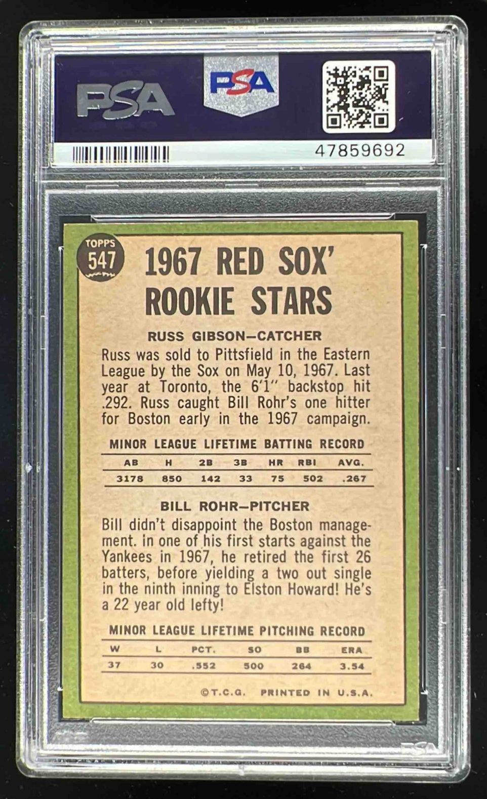 1967 Topps #547 Red Sox 1967 Rookie Stars Russ Gibson Bill Rohr RC PSA 8