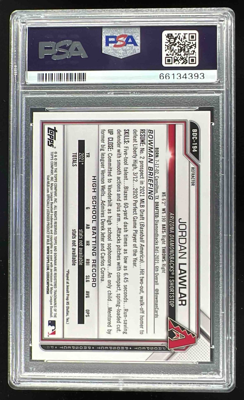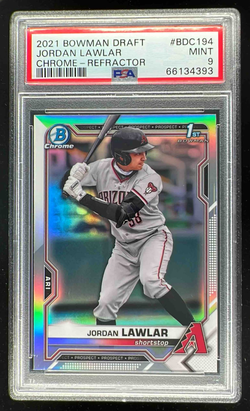 2021 Bowman Draft Chrome Refractor #BDC-194 Jordan Lawlar RC PSA 9