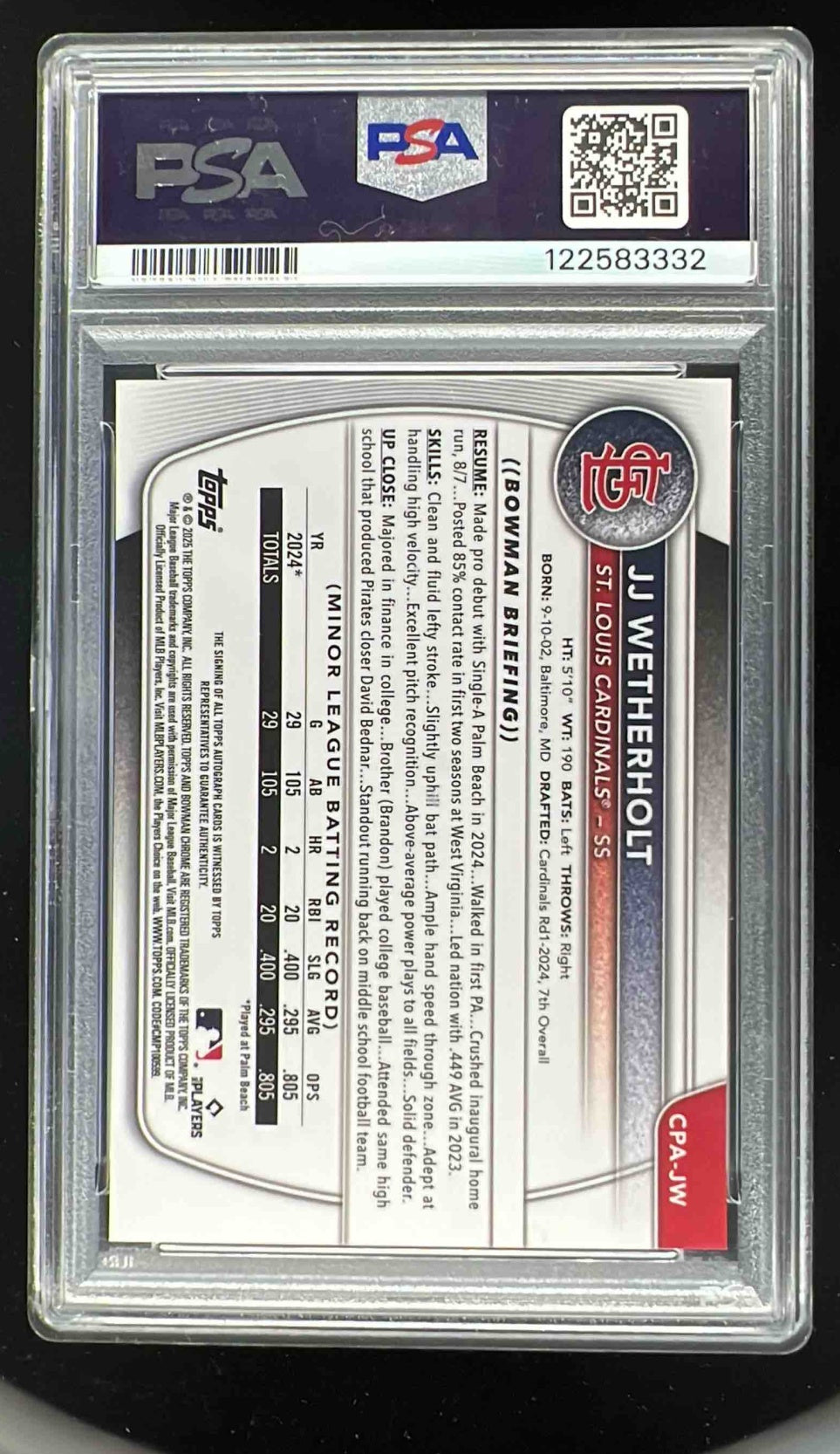 2025 Bowman Chrome Autographs #CPA-JW JJ Wetherholt RC Auto PSA 9