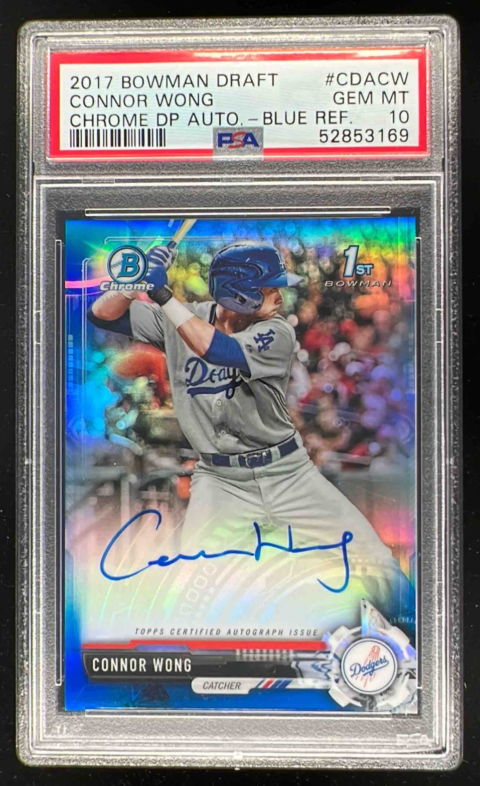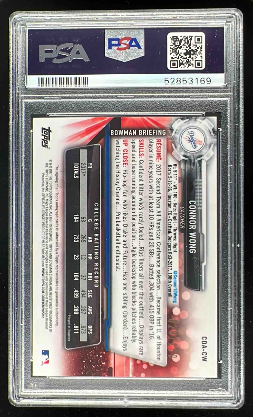 2017 Bowman Draft Chrome Pick Blue Refractor #CDACW Connor Wong Auto /150 PSA 10