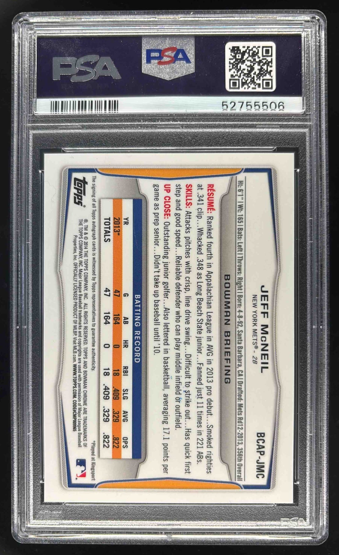 2014 Bowman Chrome Prospect Autographs #BCAP-JMC Jeff McNeil Auto PSA 10