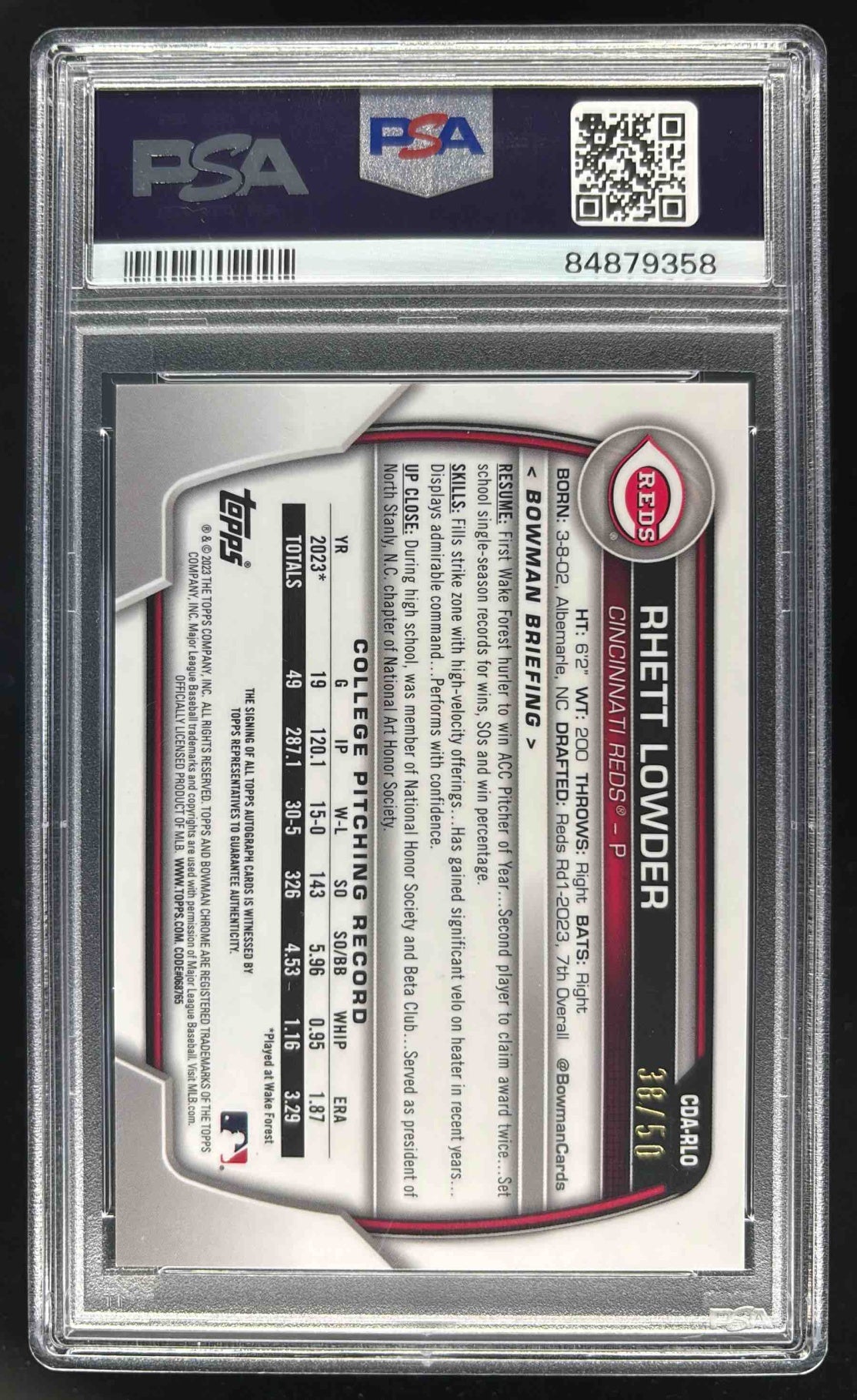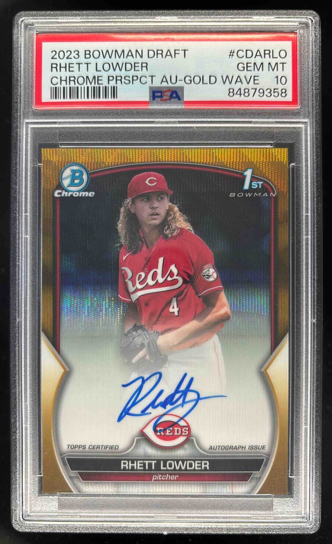 2023 Bowman Draft Chrome Gold Wave Refractor Rhett Lowder RC Auto /50 PSA 10