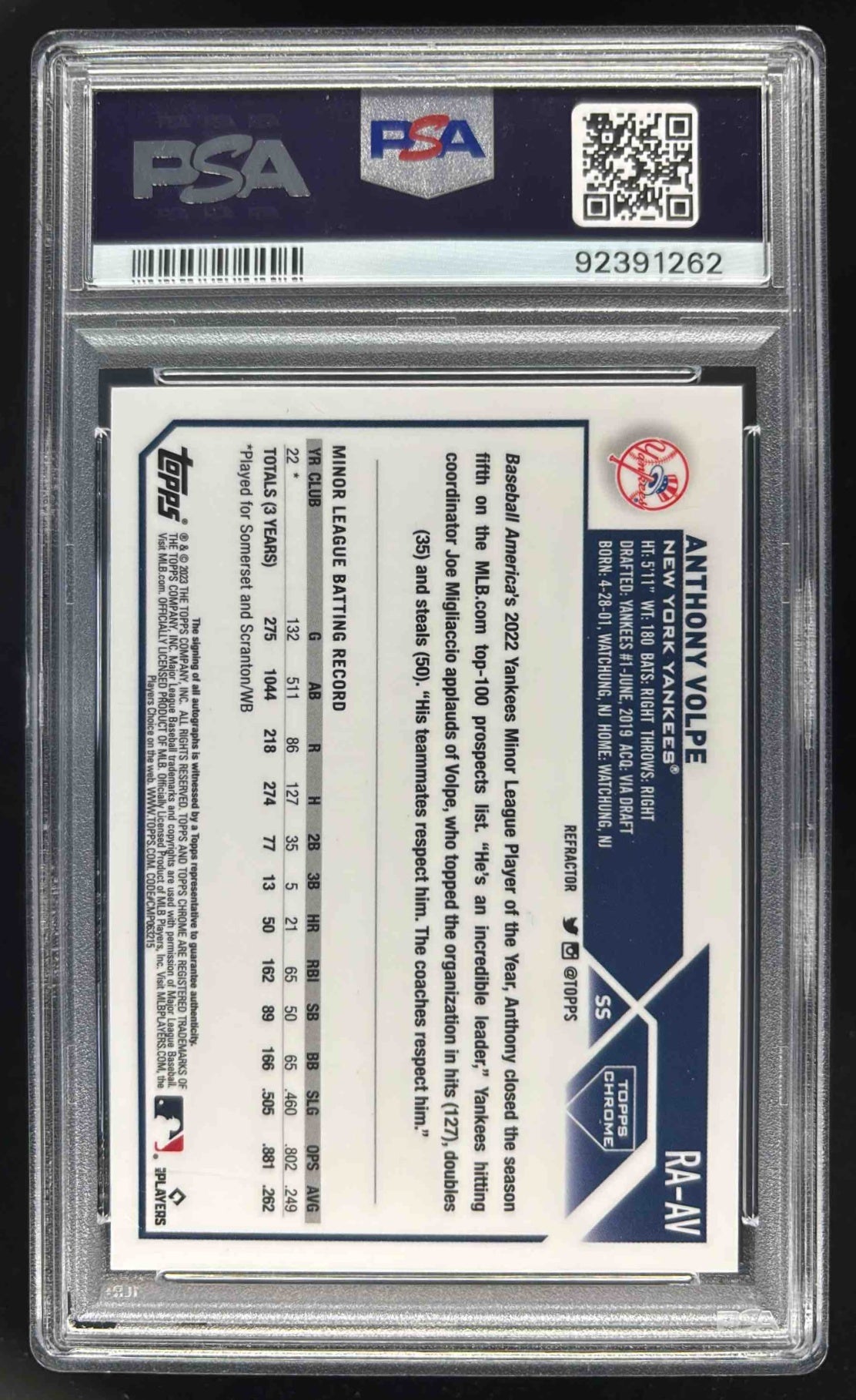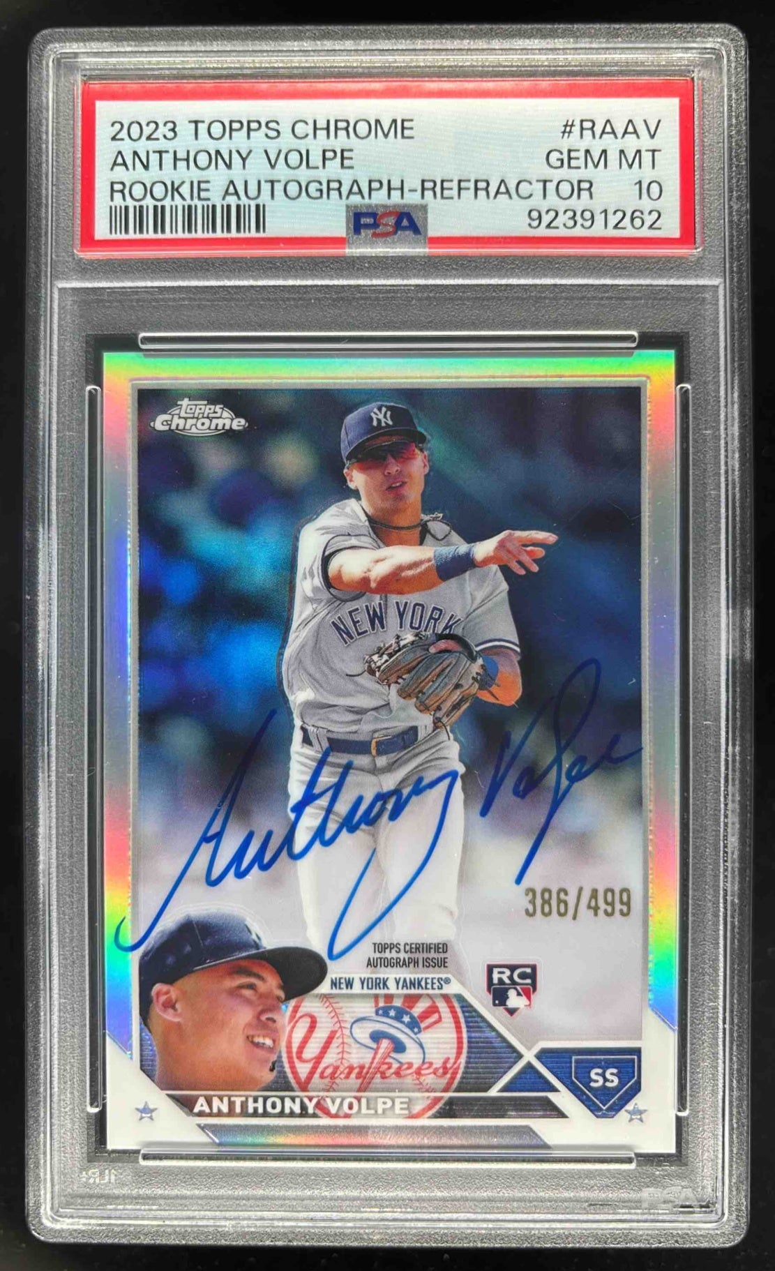 2023 Topps Chrome Rookie Refractor #RA-AV Anthony Volpe RC Auto /499 PSA 10