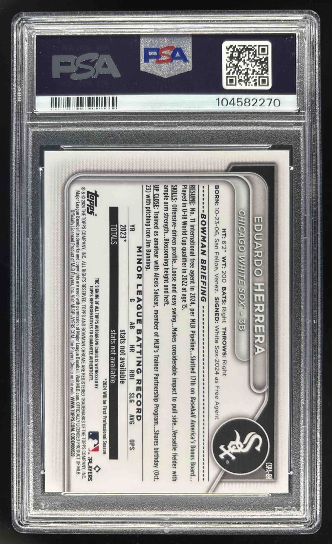 2024 Bowman Chrome Sapphire Prospect #CSPA-EH Eduardo Herrera Auto /199 PSA 10