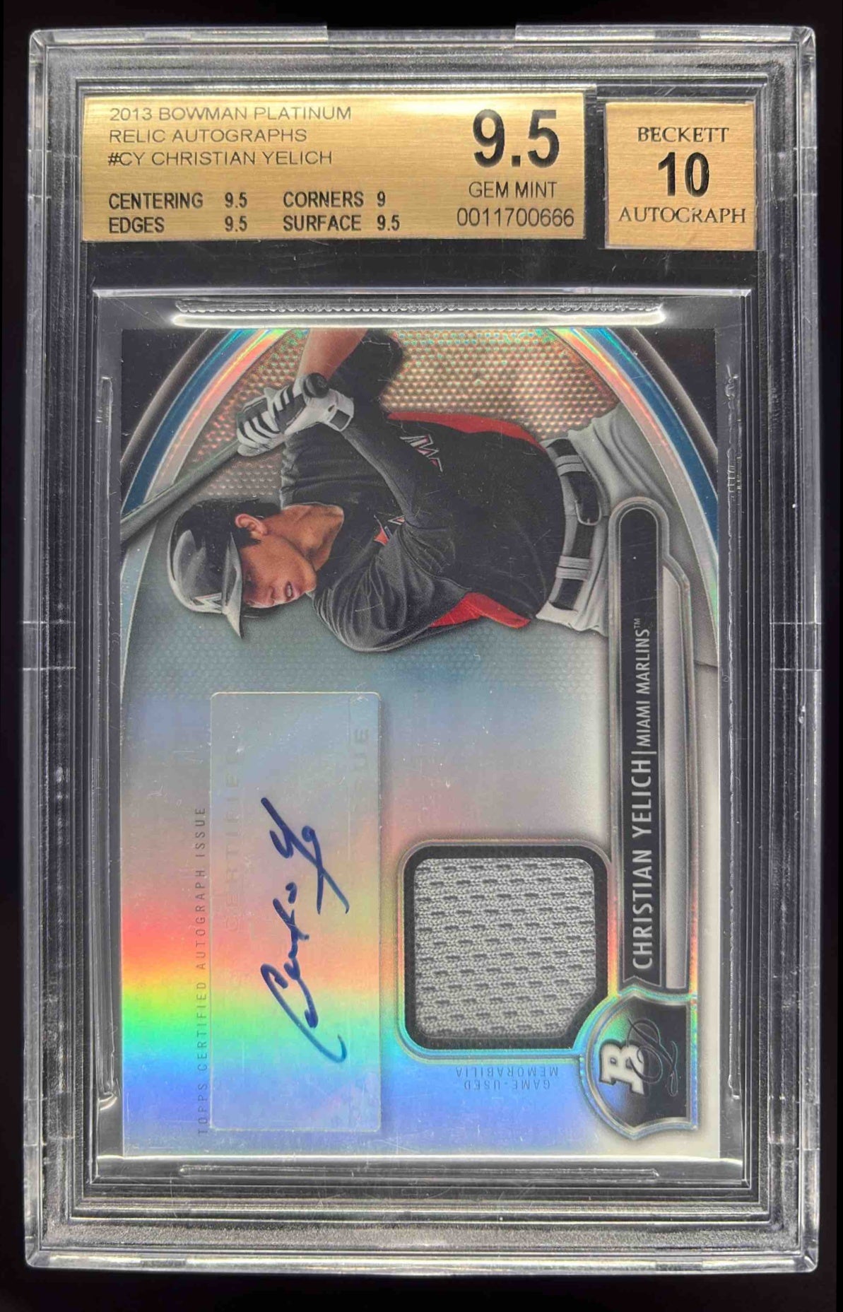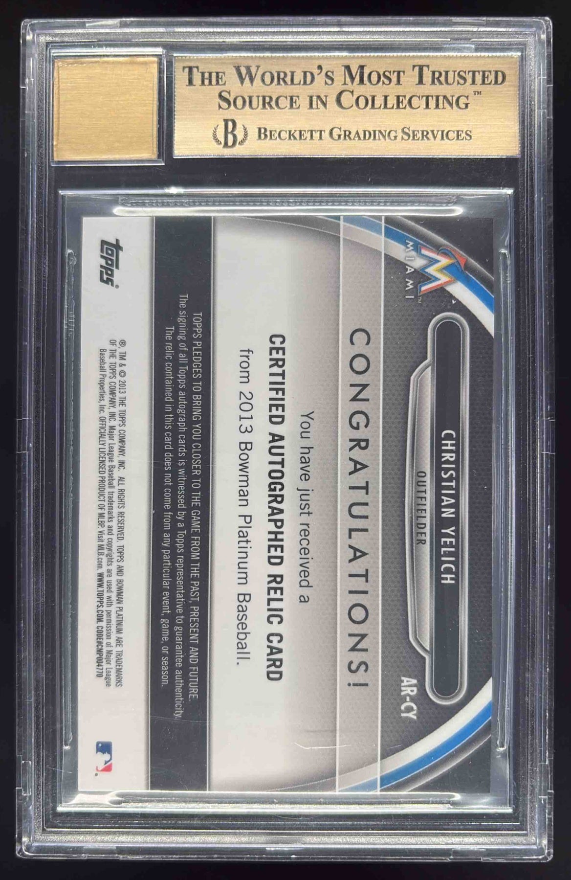 2013 Bowman Platinum Relic #AR-CY Christian Yelich Autograph RC Auto BGS 9.5