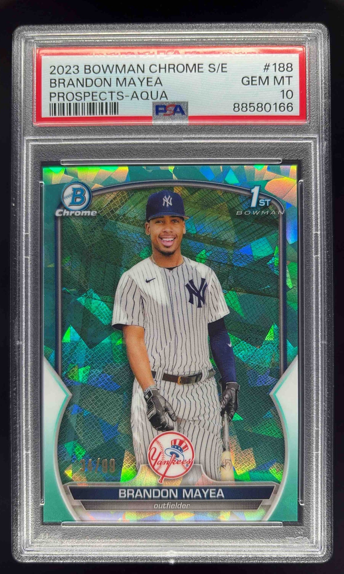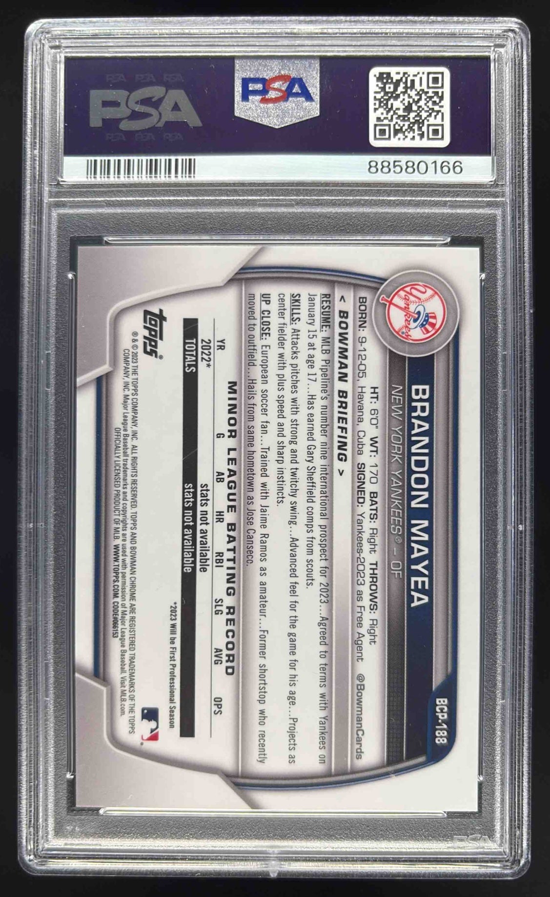 2023 Bowman Chrome Sapphire Prospects Aqua #BCP-188 Brandon Mayea RC /99 PSA 10