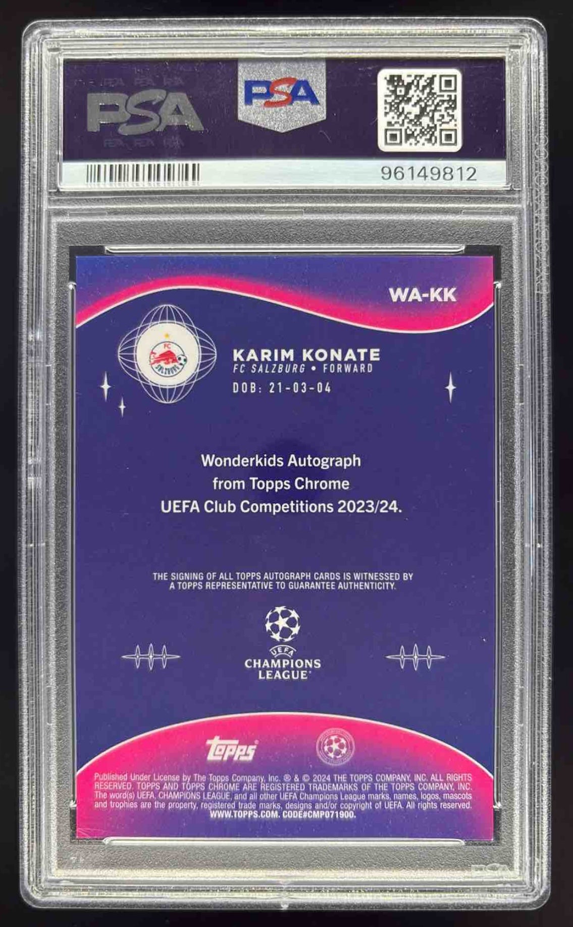 2023 Topps Chrome UEFA Wonderkids Autographs #WA-KK Karim Konate RC Auto PSA 10
