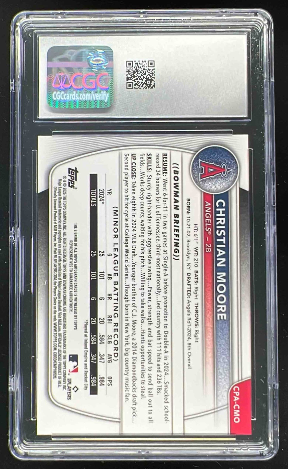 2025 Bowman Chrome Prospect Autographs #CPA-CMO Christian Moore Auto CGC 10