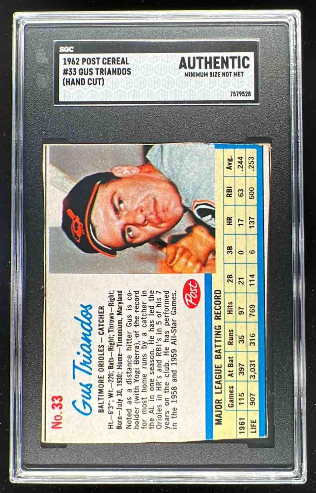1962 Post Cereal #33 Gus Triandos Hand Cut SGC Authentic