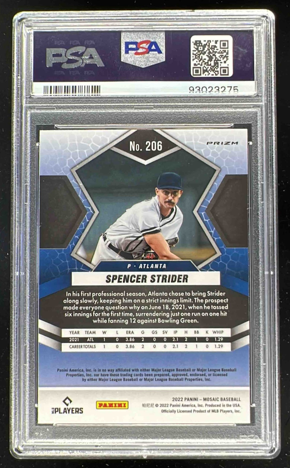 2022 Panini Mosaic Mosaic #206 Spencer Strider RC PSA 10