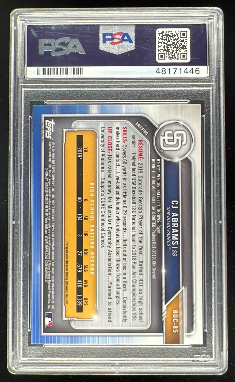 2019 Bowman Draft Chrome #BDC-85 CJ Abrams PSA 10
