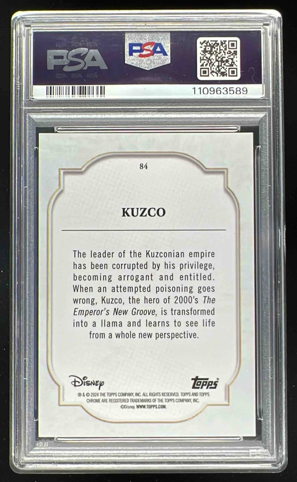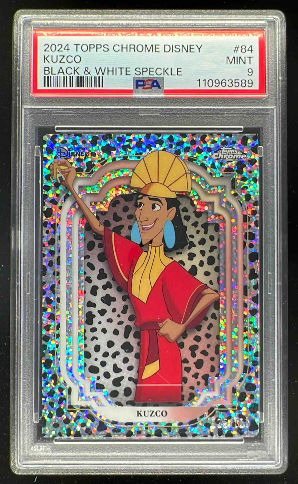 2024 Topps Chrome Disney Black and White Speckle #84 Kuzco /101 PSA 9