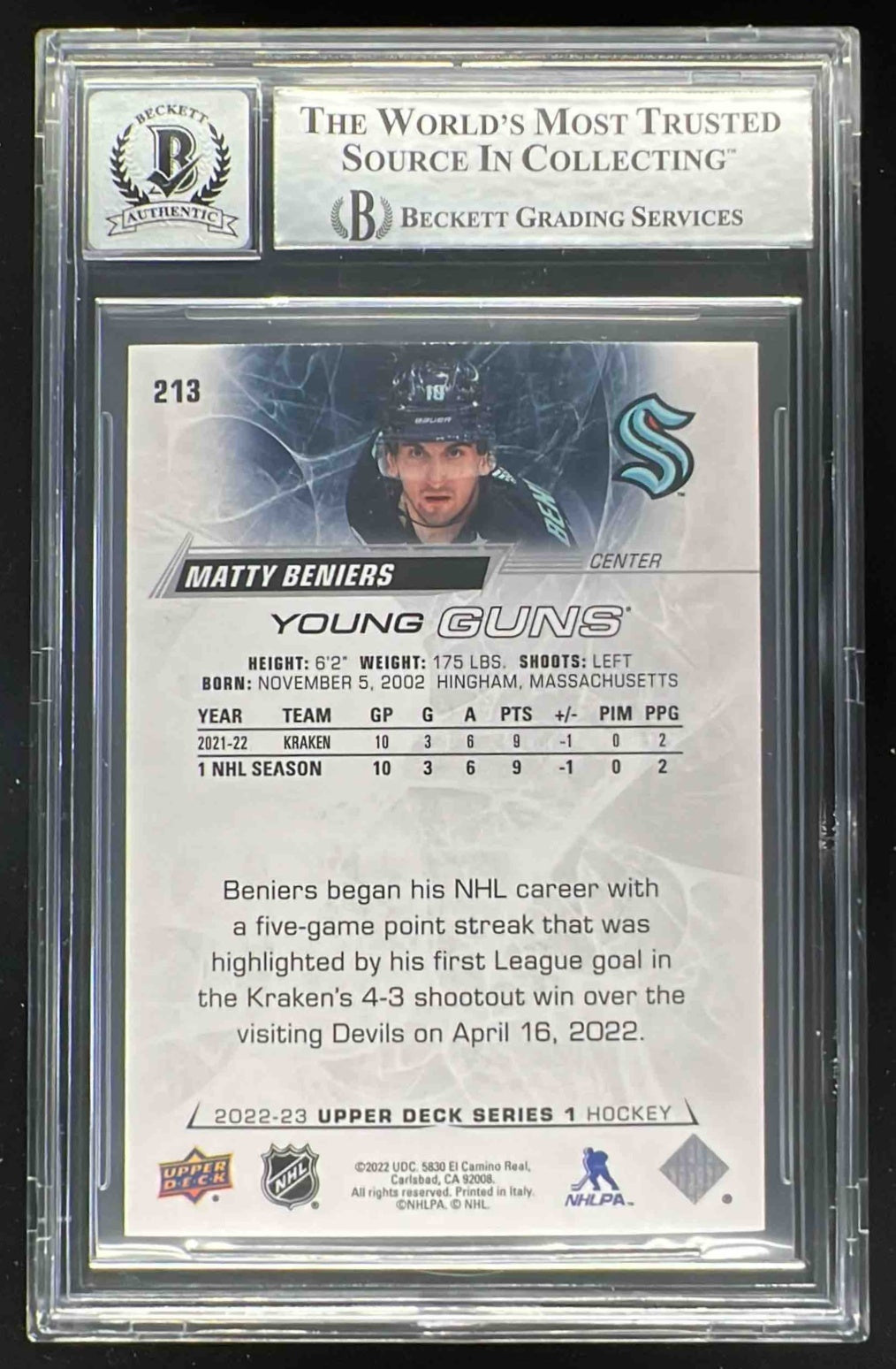 2022-23 Upper Deck #213 Matty Beniers Young Guns RC Auto BGS Authentic