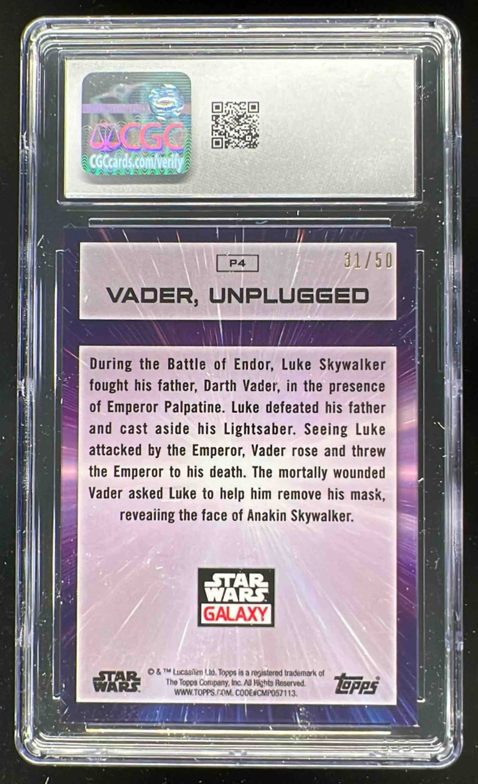 2022 Topps Chrome Star Wars Galaxy Promo #P4 Unplugged Vader /50 CGC 10