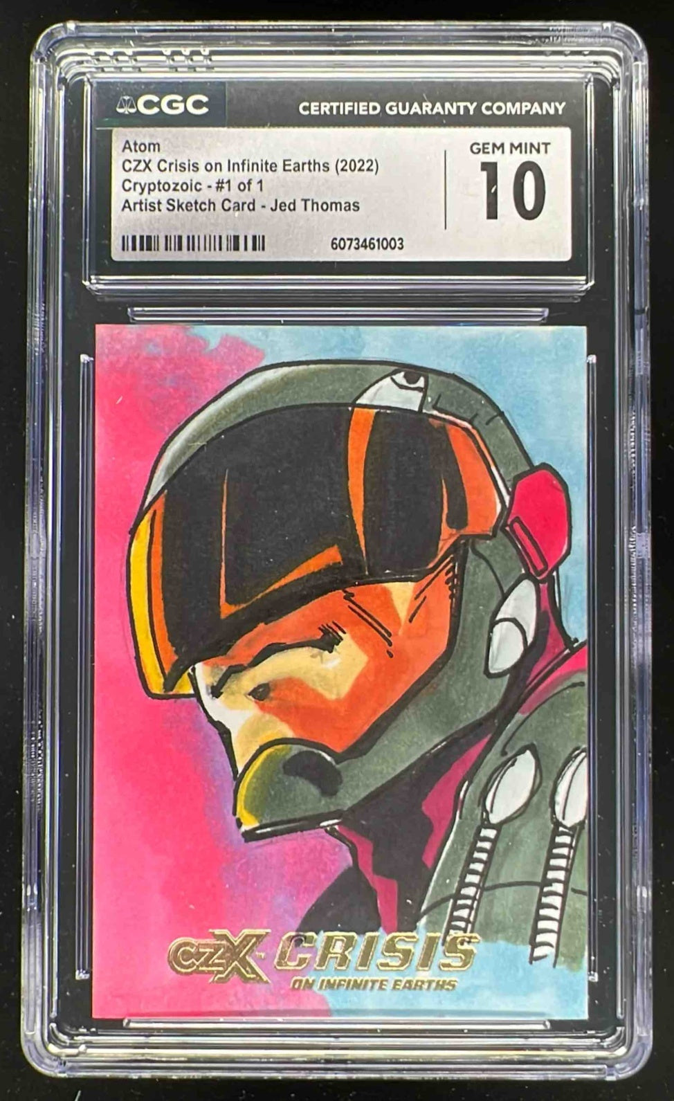 2022 CZX Crisis on Infinite Earths Artist Sketch Card Jed Thomas Atom 1/1 CGC 10