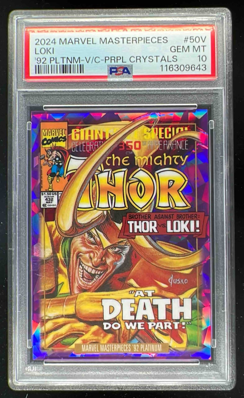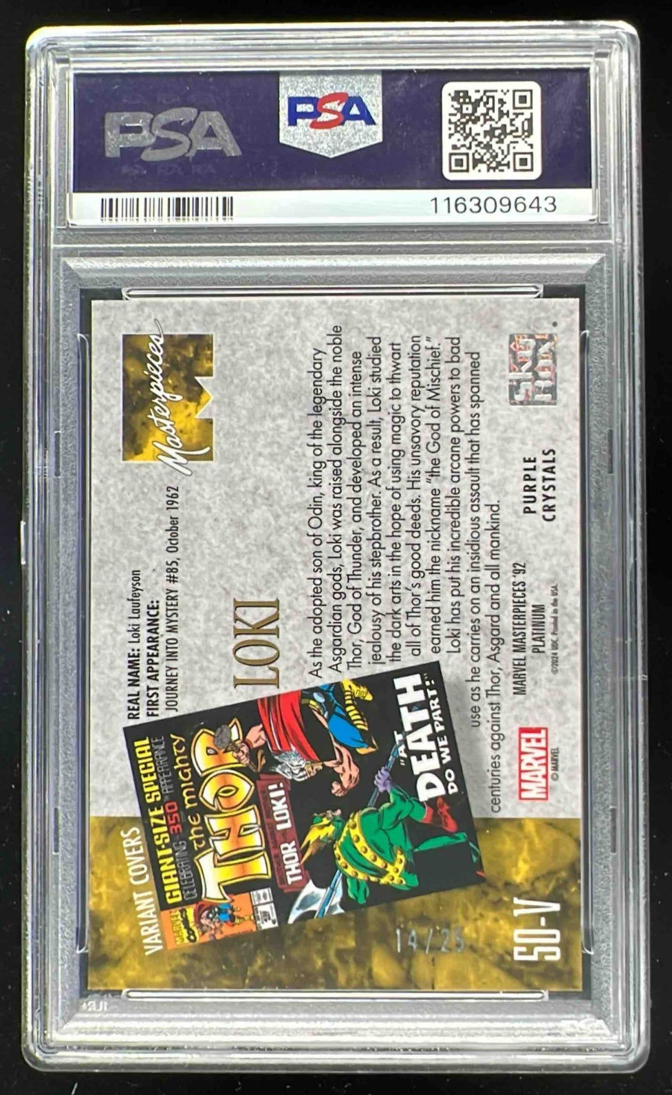 2024 UD Marvel Masterpieces '92 Platinum Cover Purple Crystals Loki /25 PSA 10