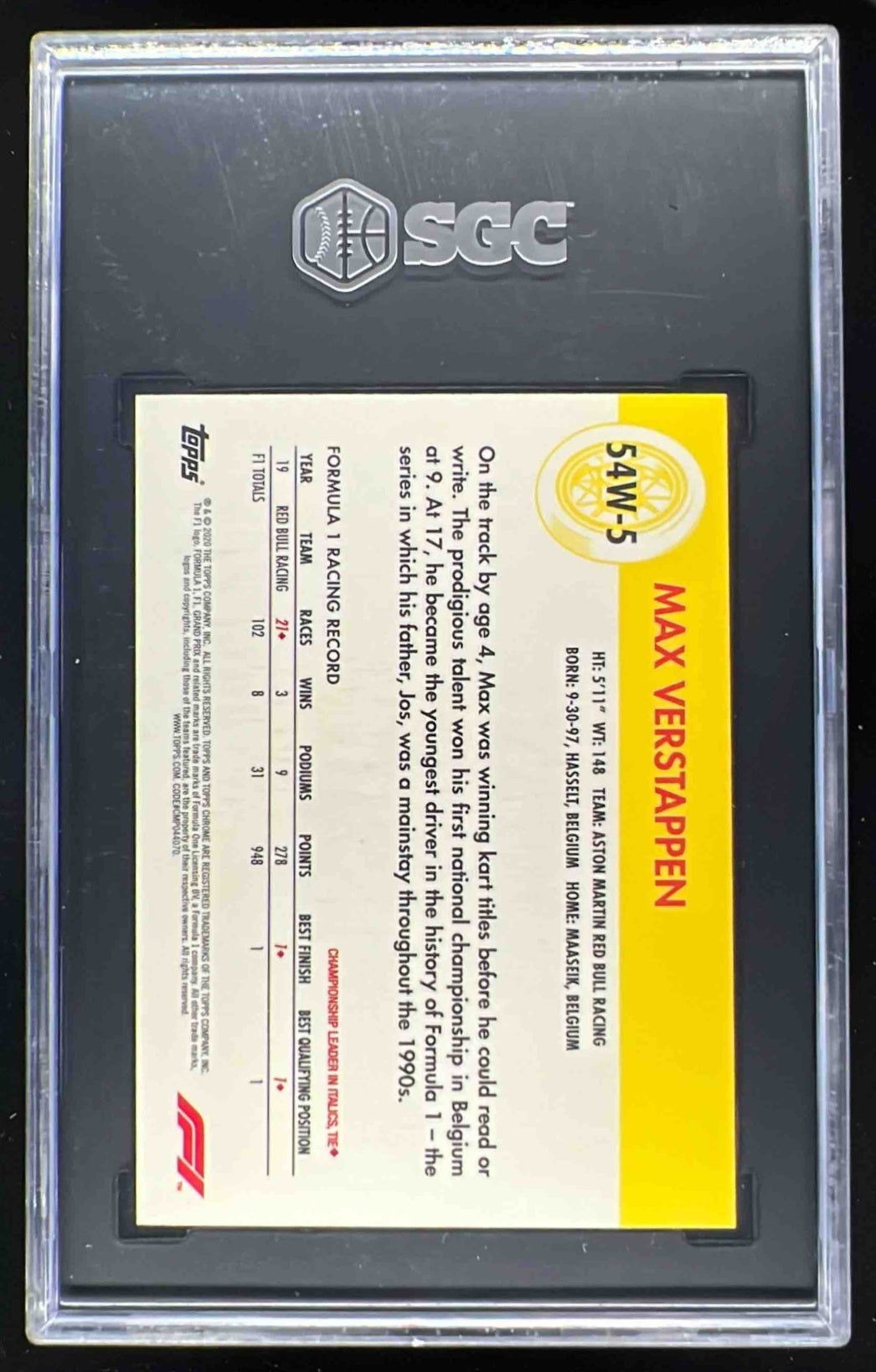 2020 Topps Chrome Formula 1 1954 World on Wheels #54W-5 Max Verstappen SGC 10