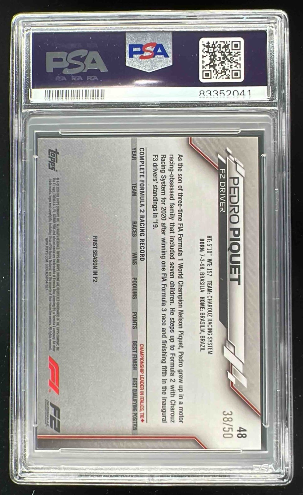 2020 Topps Chrome Sapphire Formula 1 Gold #48 Pedro Piquet /50 PSA 9