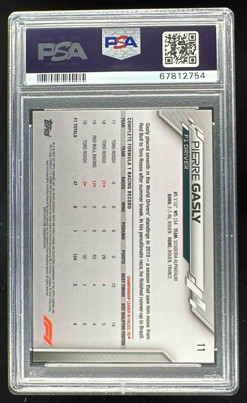 2020 Topps Chrome Formula 1 #11 Pierre Gasly PSA 10