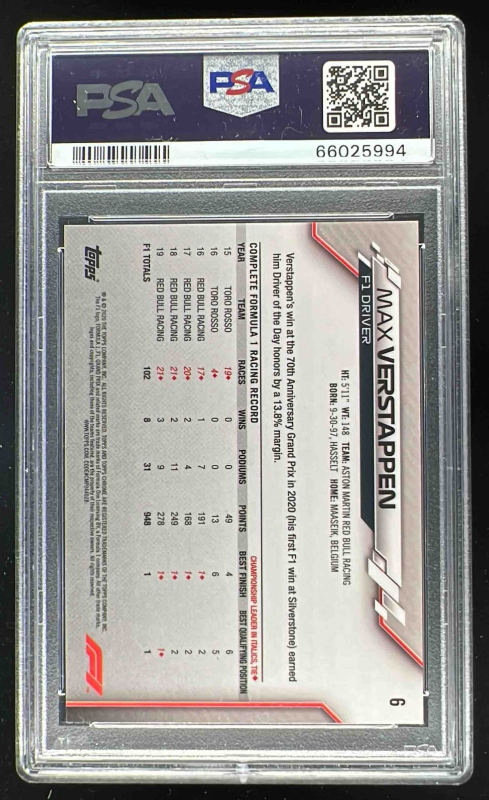 2020 Topps Chrome Formula 1 #6a Max Verstappen PSA 10