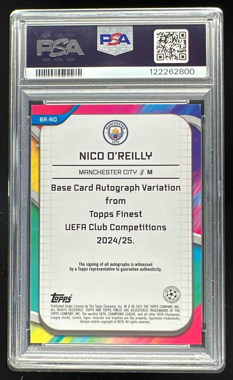 2024 Topps Finest UEFA Orange Wave Refractor #BA-NO Nico O'Reilly Auto /25 PSA 7