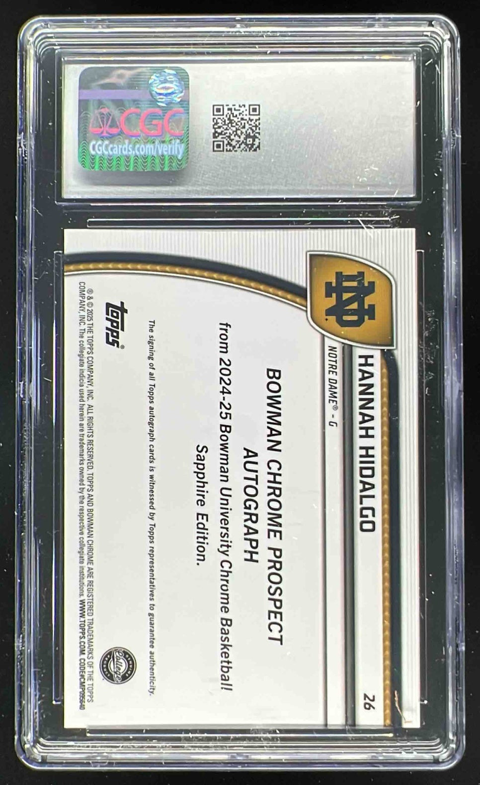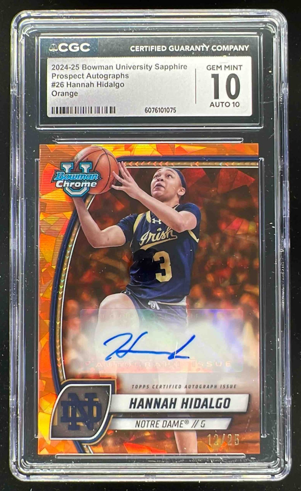 2024-25 Bowman Chrome Sapphire Orange Refractor Hannah Hidalgo Auto /25 CGC 10