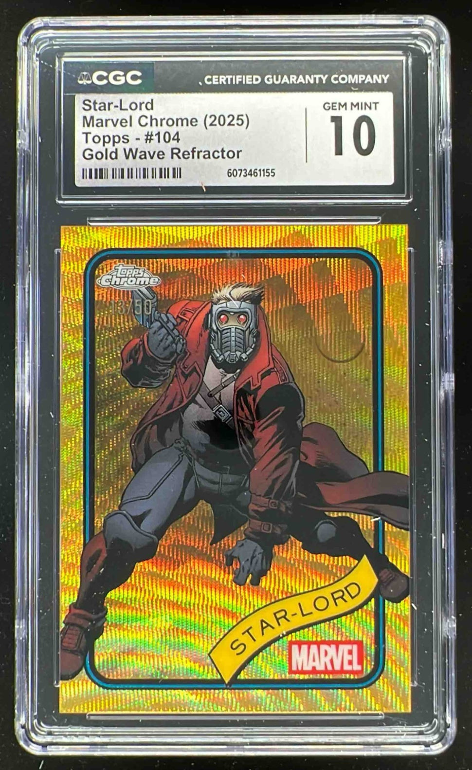 2025 Topps Chrome Marvel Gold Wave Refractor #104 Star-Lord /50 CGC 10