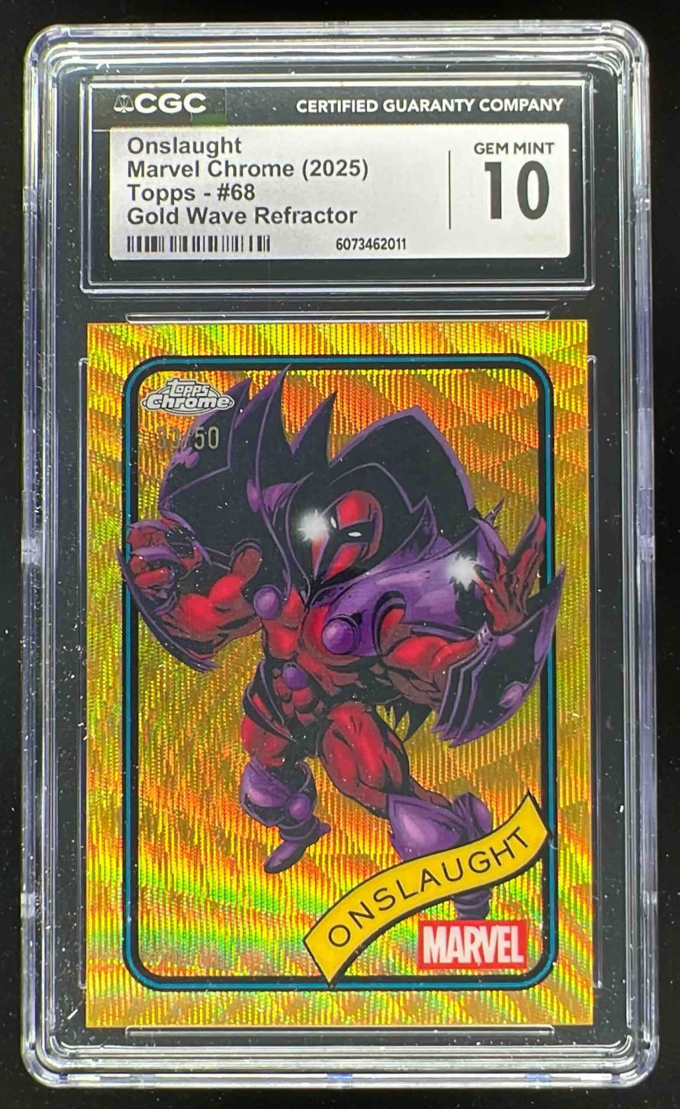 2025 Topps Chrome Marvel Gold Wave Refractor #68 Onslaught /50 CGC 10