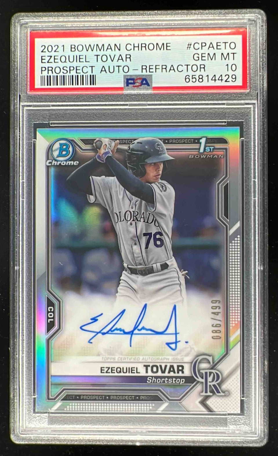 2021 Bowman Chrome Autographs Refractor Ezequiel Tovar RC Auto /499 PSA 10