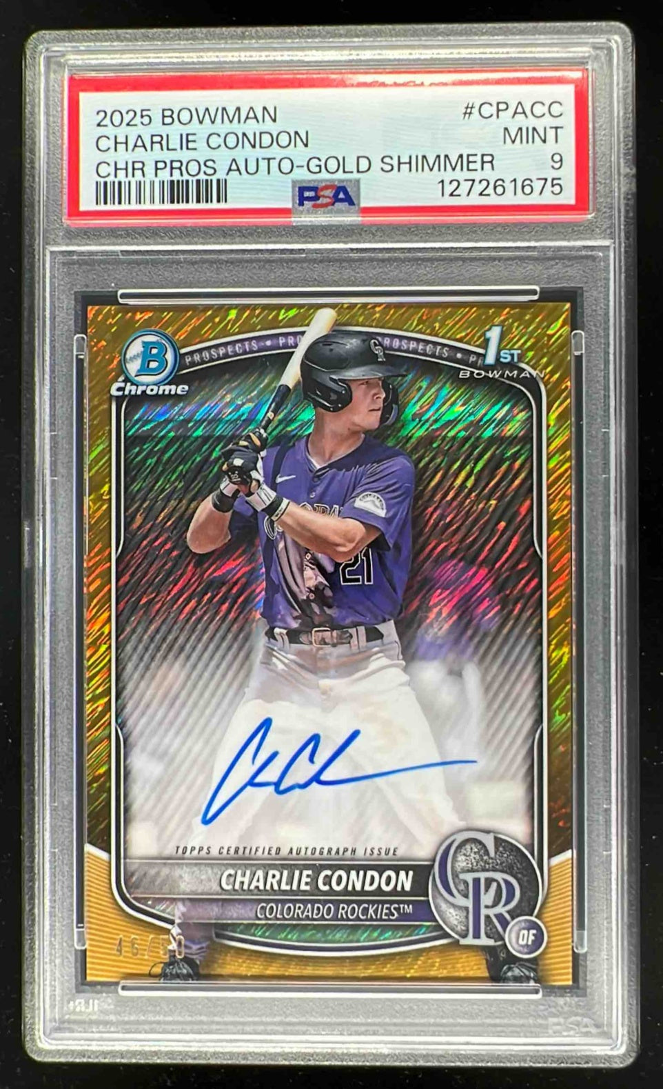 2025 Bowman Chrome Autographs Gold Shimmer #CC Charlie Condon RC Auto /50 PSA 9