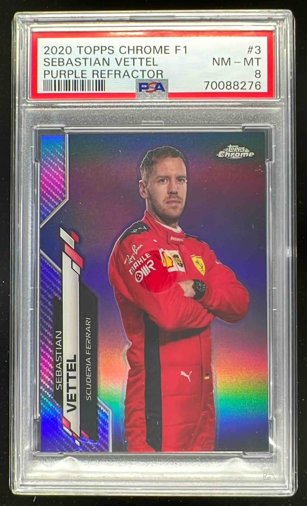 2020 Topps Chrome Formula 1 Purple Refractor #3 Sebastian Vettel /399 PSA 8
