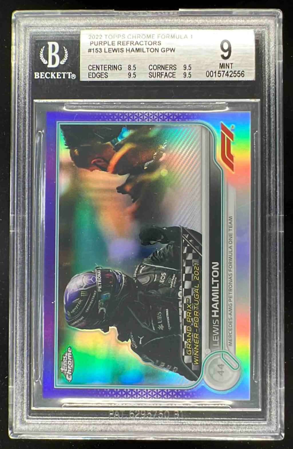 2022 Topps Chrome Formula 1 Purple Refractor #153 Lewis Hamilton /399 BGS 9