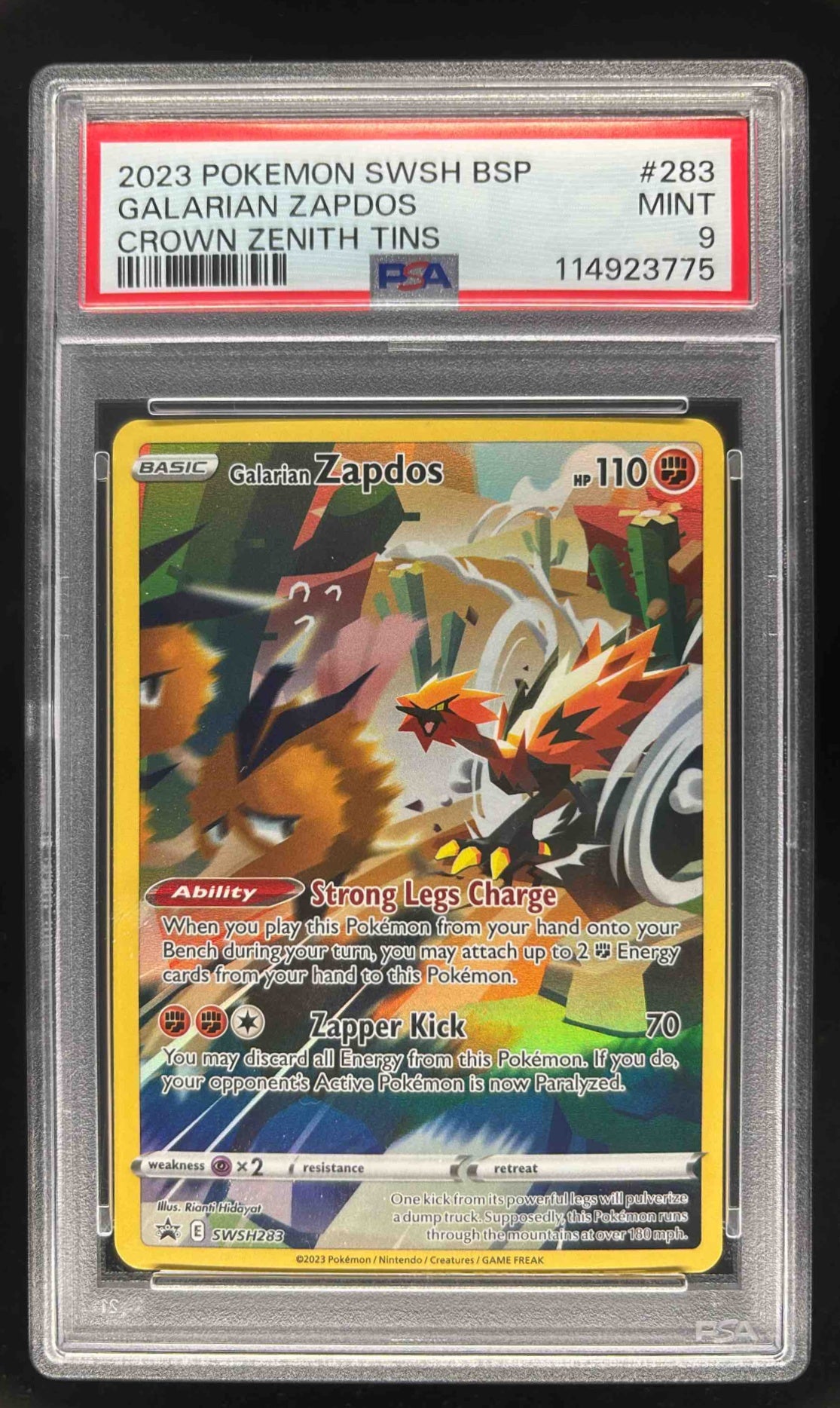2023 Pokemon Sword & Shield Black Star Promos #SWSH283 Galarian Zapdos PSA 9