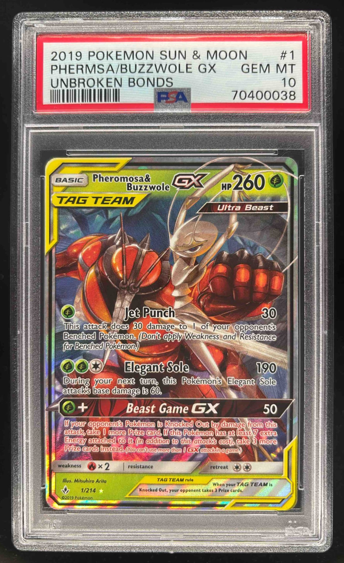 2019 Pokemon Sun Moon Unbroken Bonds Pheromosa & Buzzwole Tag Team Holo PSA 10