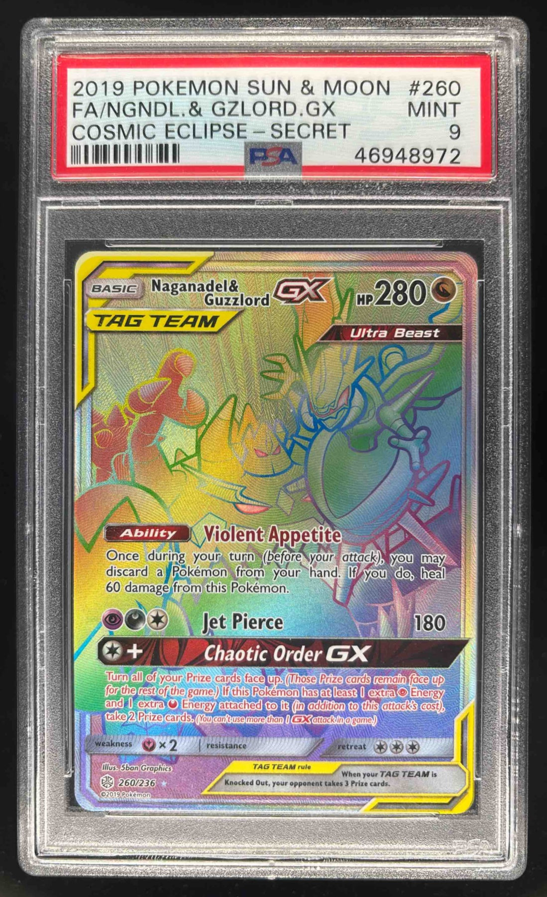2019 Pokemon Sun & Moon Cosmic Eclipse #260 Naganadel & Guzzlord Tag Team PSA 9